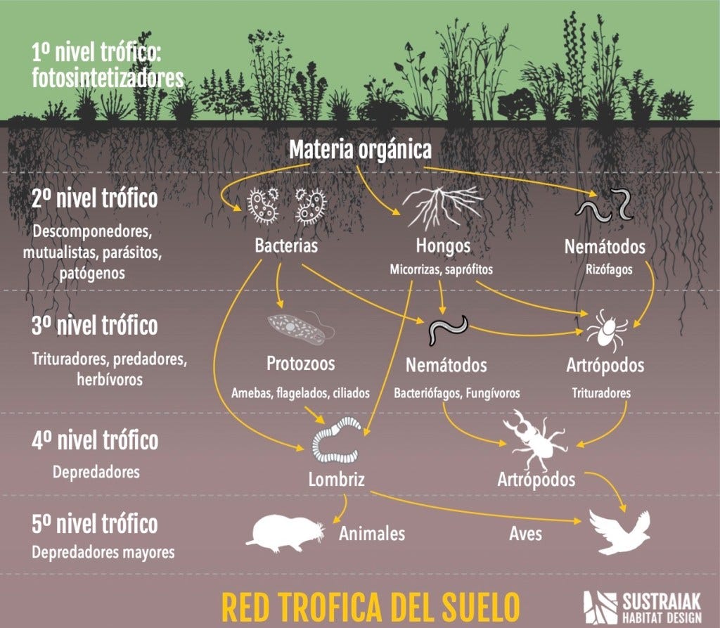 Hoy toca hablar de uno de los aspectos más desconocidos del suelo, pero de una gran importancia: la red trófica.